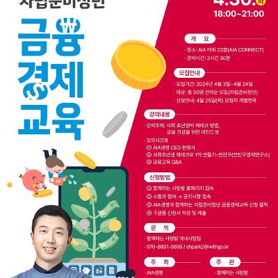 * 신청방법: 온라인 신청 https://AIA와_함께하는_사랑밭_금융경제교육.lrl.kr
