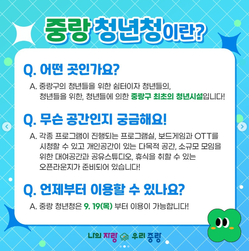 아래 내용을 다 읽으시면 중랑청년청을 더 쉽고 편하게 이용하실 수 있을 거예요💗