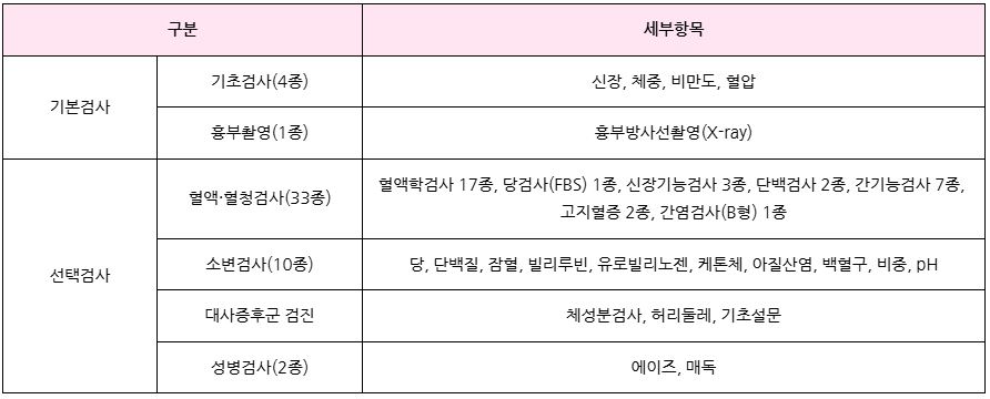 *해당 검진은 국가건강검진을 대체할 수 없음