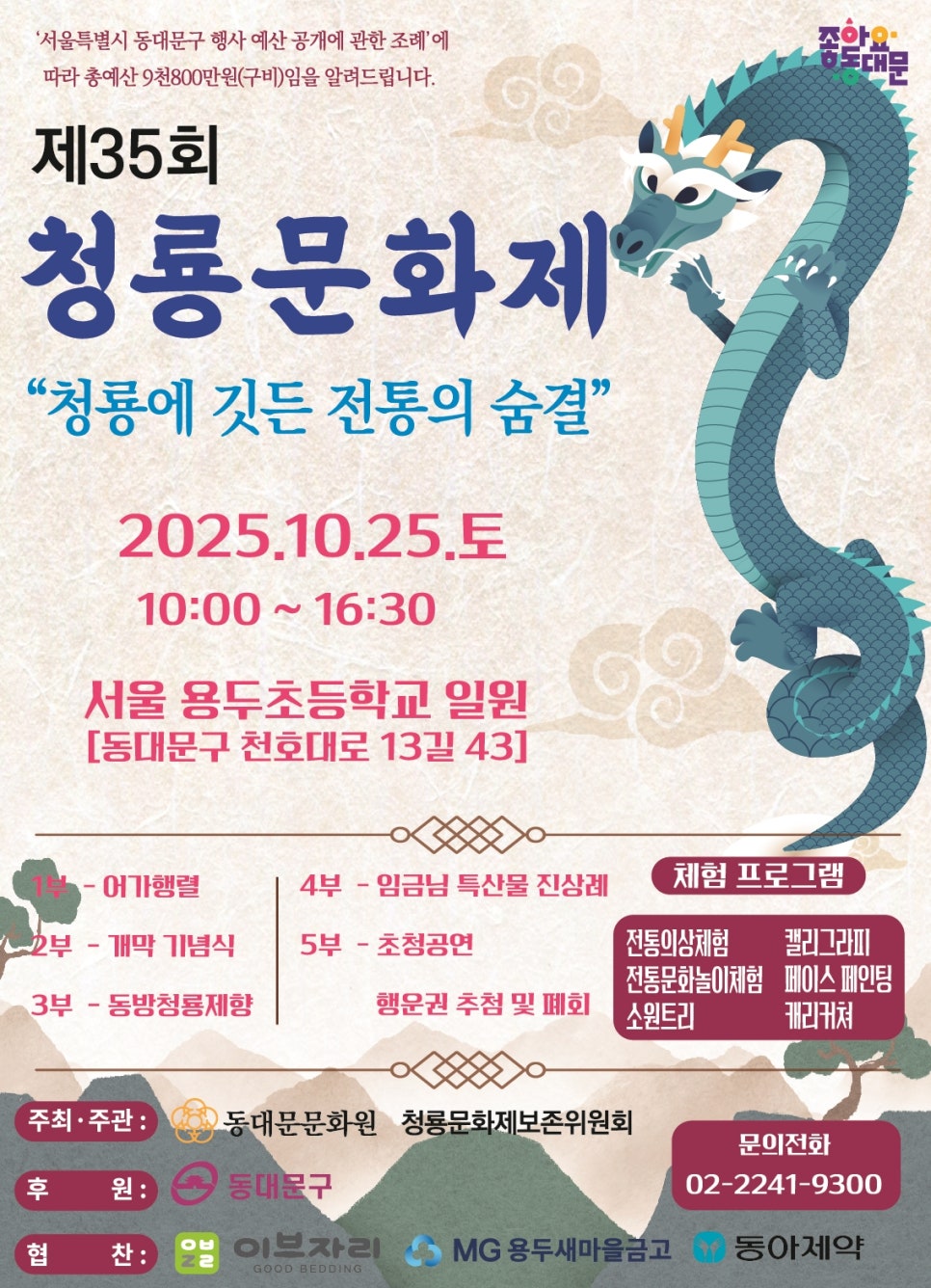 1991년부터 용두제라는 이름으로 지내던 기우제에서 비롯된 청룡문화제가 10. 25.(토) 용두초등학교에서 열립니다 !