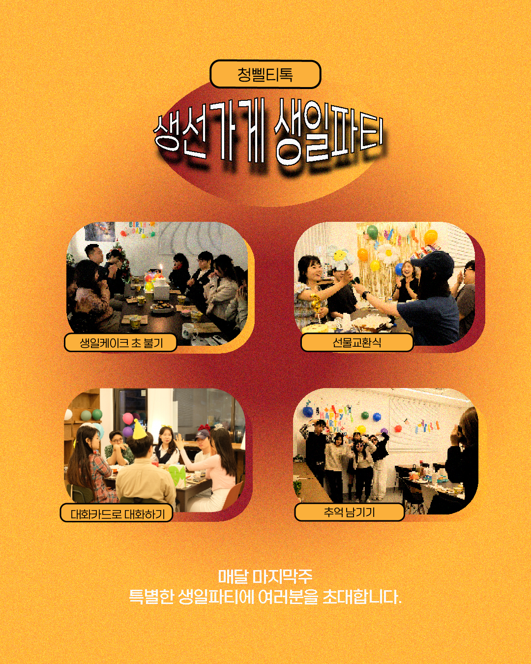 생선가게는 1인 가구 청년 생일 커뮤니티를 위한 가상의 공간입니다.🎉🎂