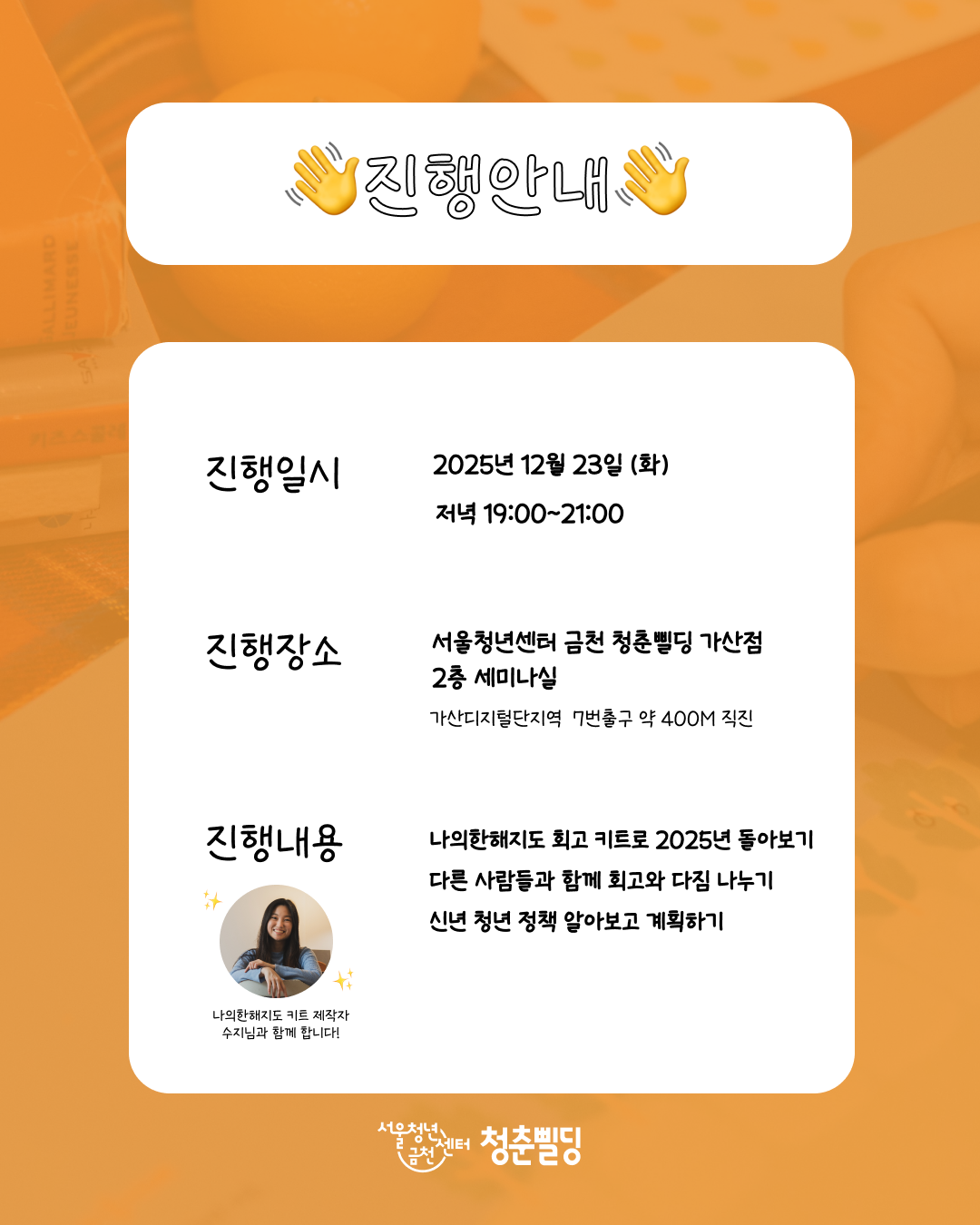 👋 진행장소: 서울청년센터 금천 청춘삘딩 (가산점) 2층 세미나실