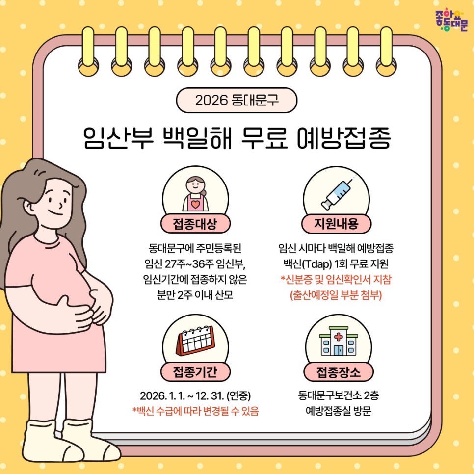 2026년에도 임산부 백일해 예방접종 무료 지원이 가능하이 아래 내용을 확인해주세요 !