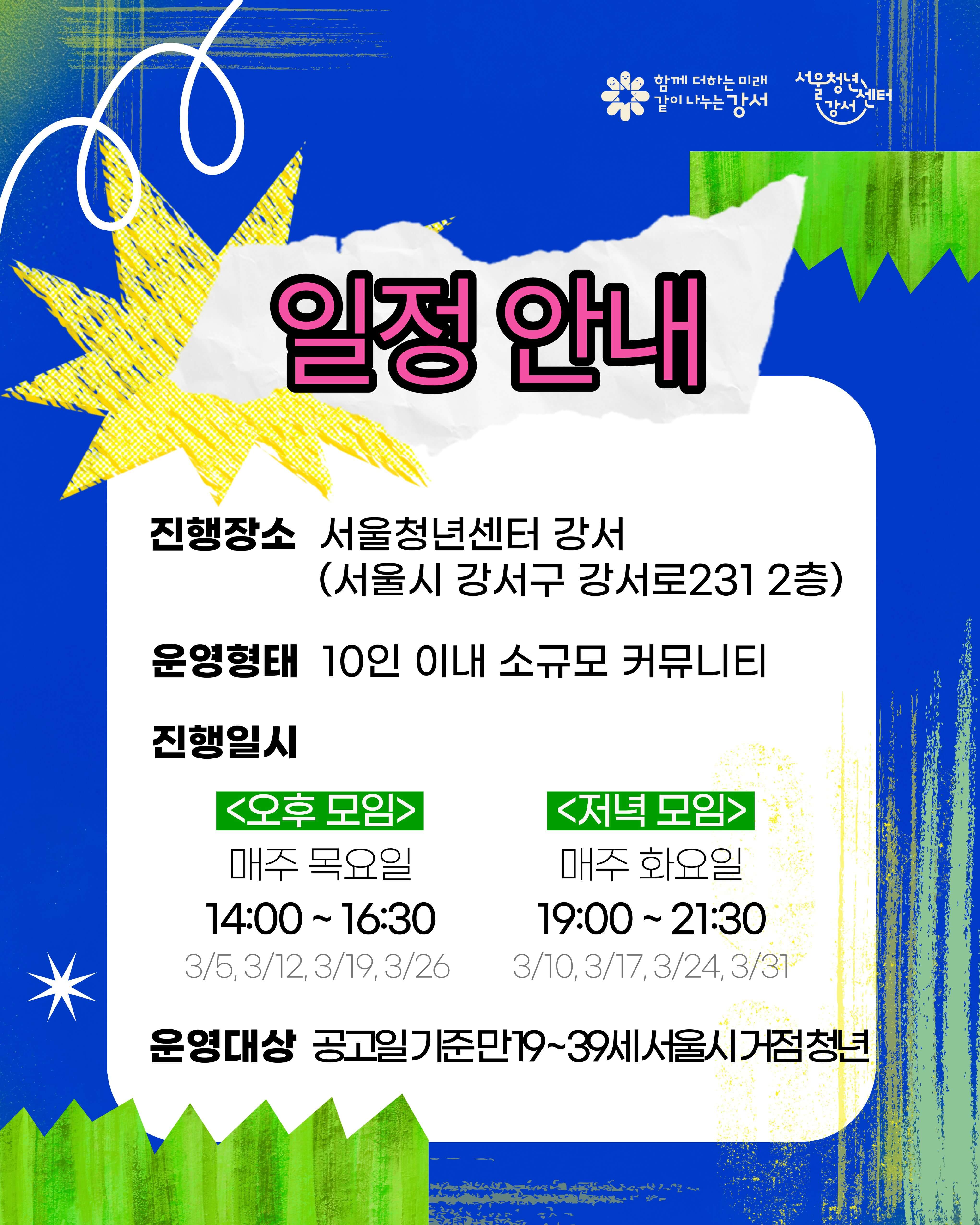 📍 진행 장소: 서울청년센터 강서 및 외부 활동장
