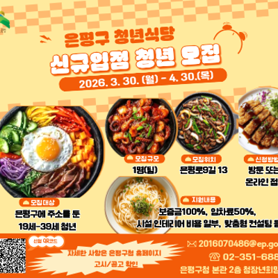 🍽️ 은평구 청년식당 신규입점 청년 모집!