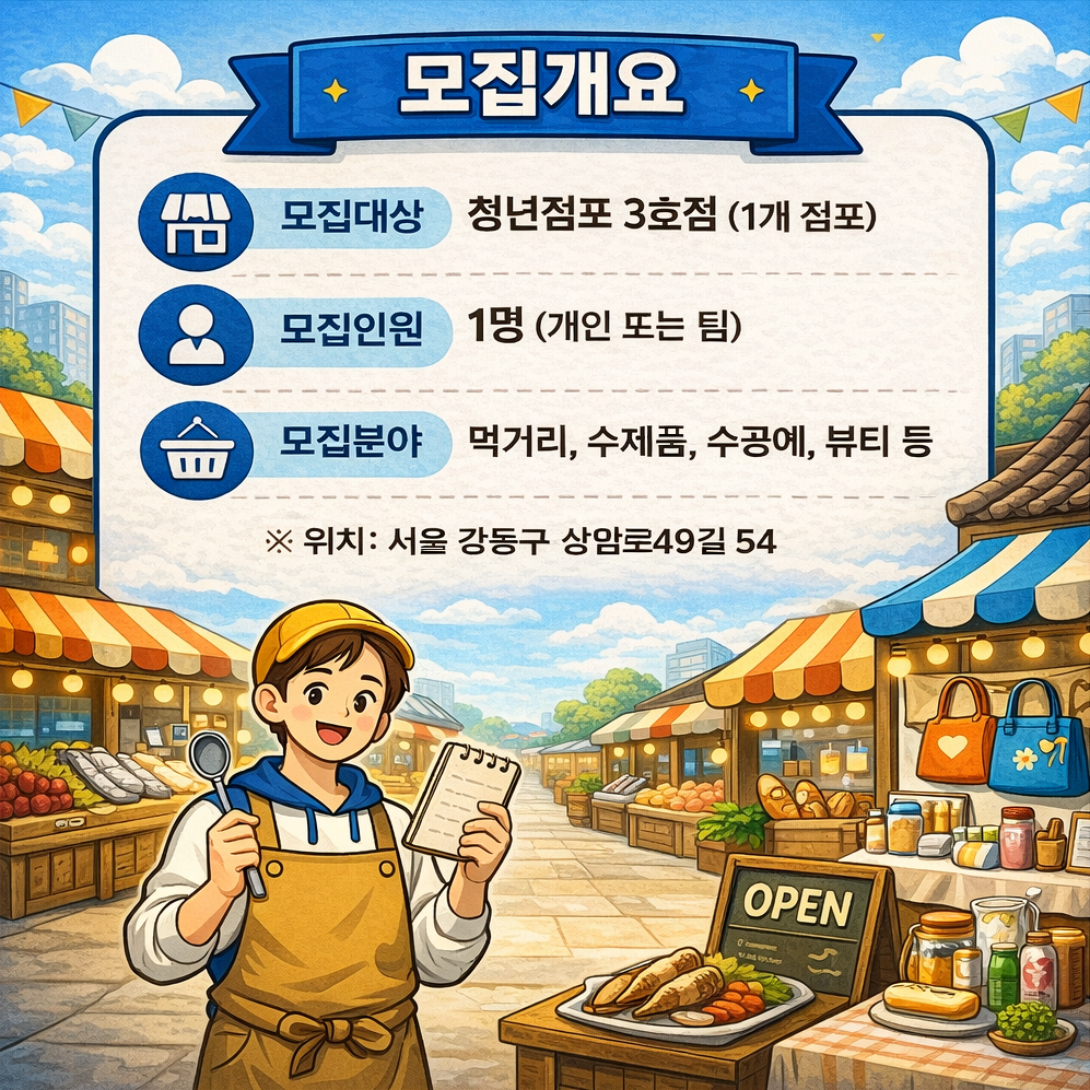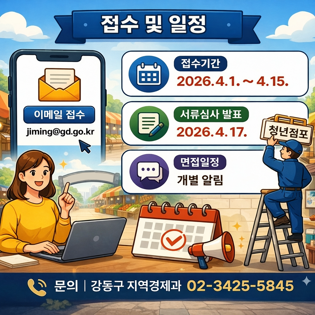 ※ 자세한 내용은 공고문 참조(강동구청>고시공고>‘청년점포’ 검색)